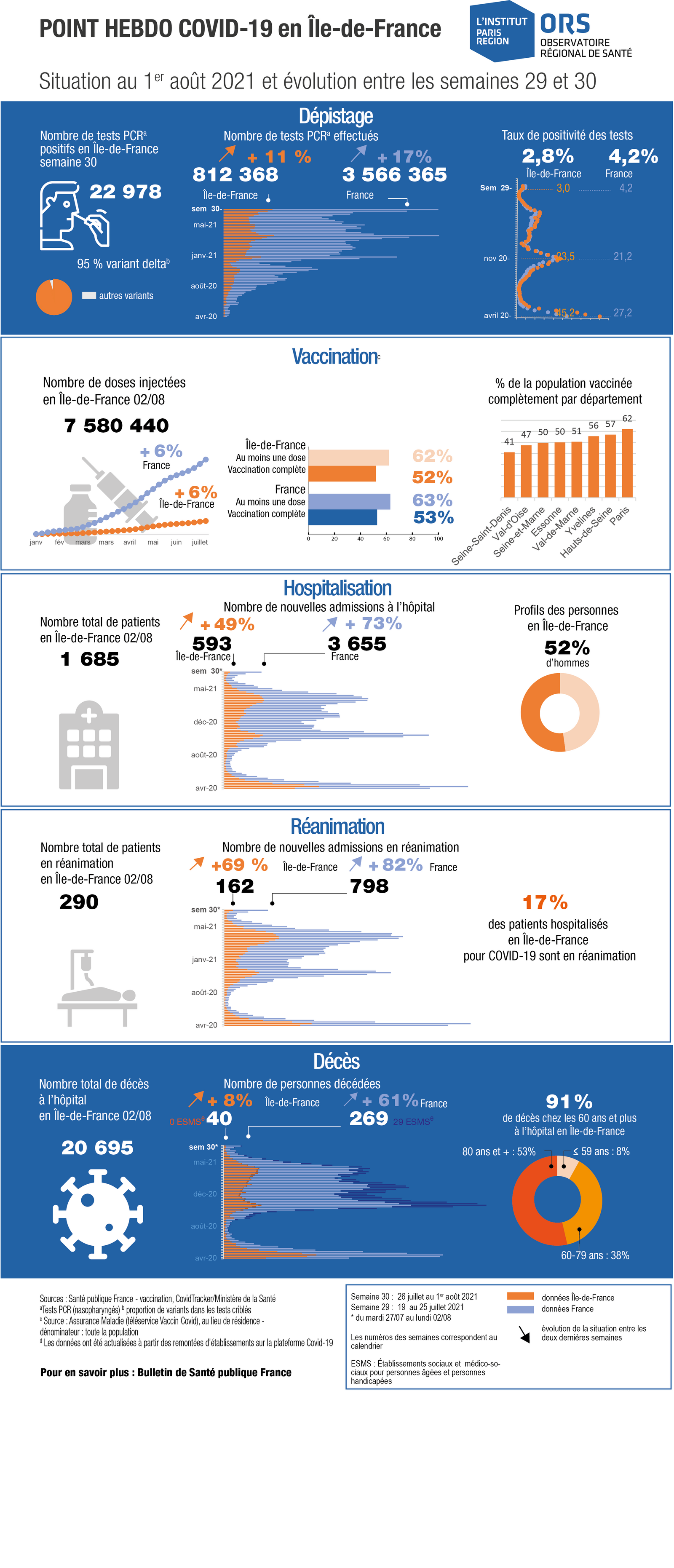 Point Hebdo COVID-19 en Île-de-France. Situation au 1er août 2021